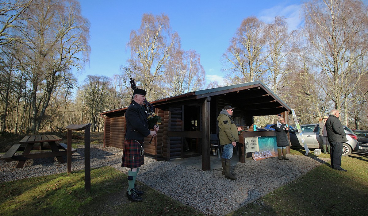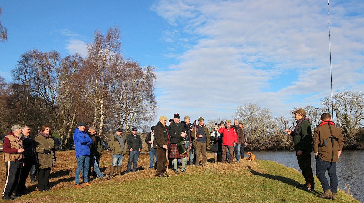 All gather at the fishing hut to await the piper leading us to the banks. A wonderful day considering the rest of Scotland’s weather situation.