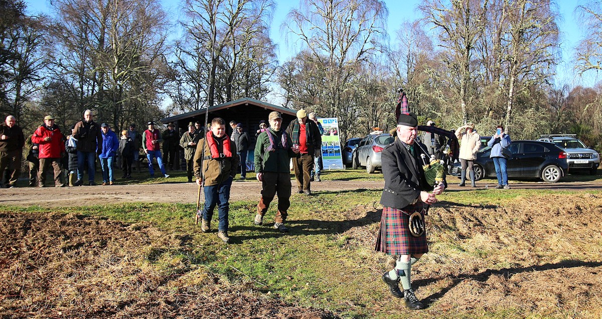The piper then pipes our return to the hut as the hot sausage rolls and bread pudding are taken to ward off the chill wind of the morning.